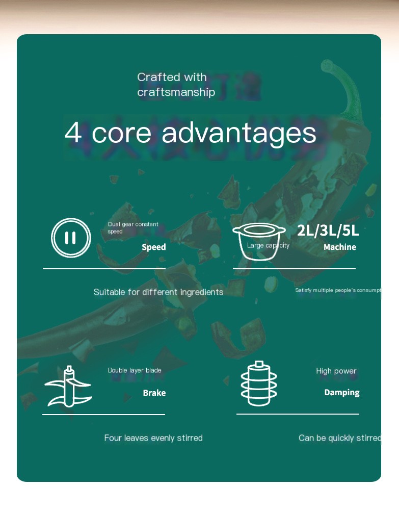 👉 Baja velocidad: ideal para hierbas finas, salsas delicadas y cortes suaves.